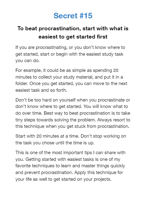 Imagine you get a proven list of study tips, tricks and guidelines that has been tried and tested by 100s of top students in the world.